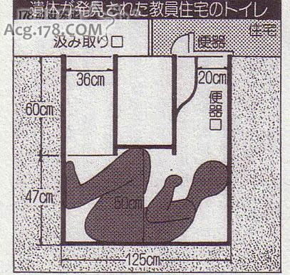 平成元年2月28日,在福岛县都路村发生一起奇怪的事件。村里的一名女性教师在回家后发现厕所内好像有什么东西,仔细看了之后发现是鞋子一样的物体。感到非常害怕的她到屋外的排污口中一看,发现了人的脚。之后警方使用起重机破坏了便槽之后发现了这样不可思议的尸体: